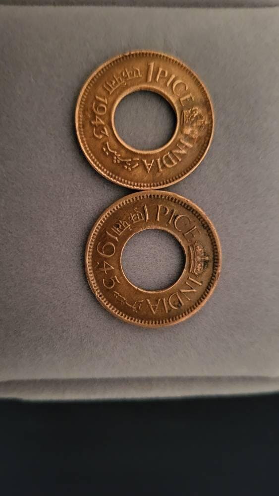 Crown of George VI King Emperor & Hole 1 Pice British India Authentic Coin Money for Jewelry and Craft Making (British Raj) (Emperor of India) (Hole in Coin)