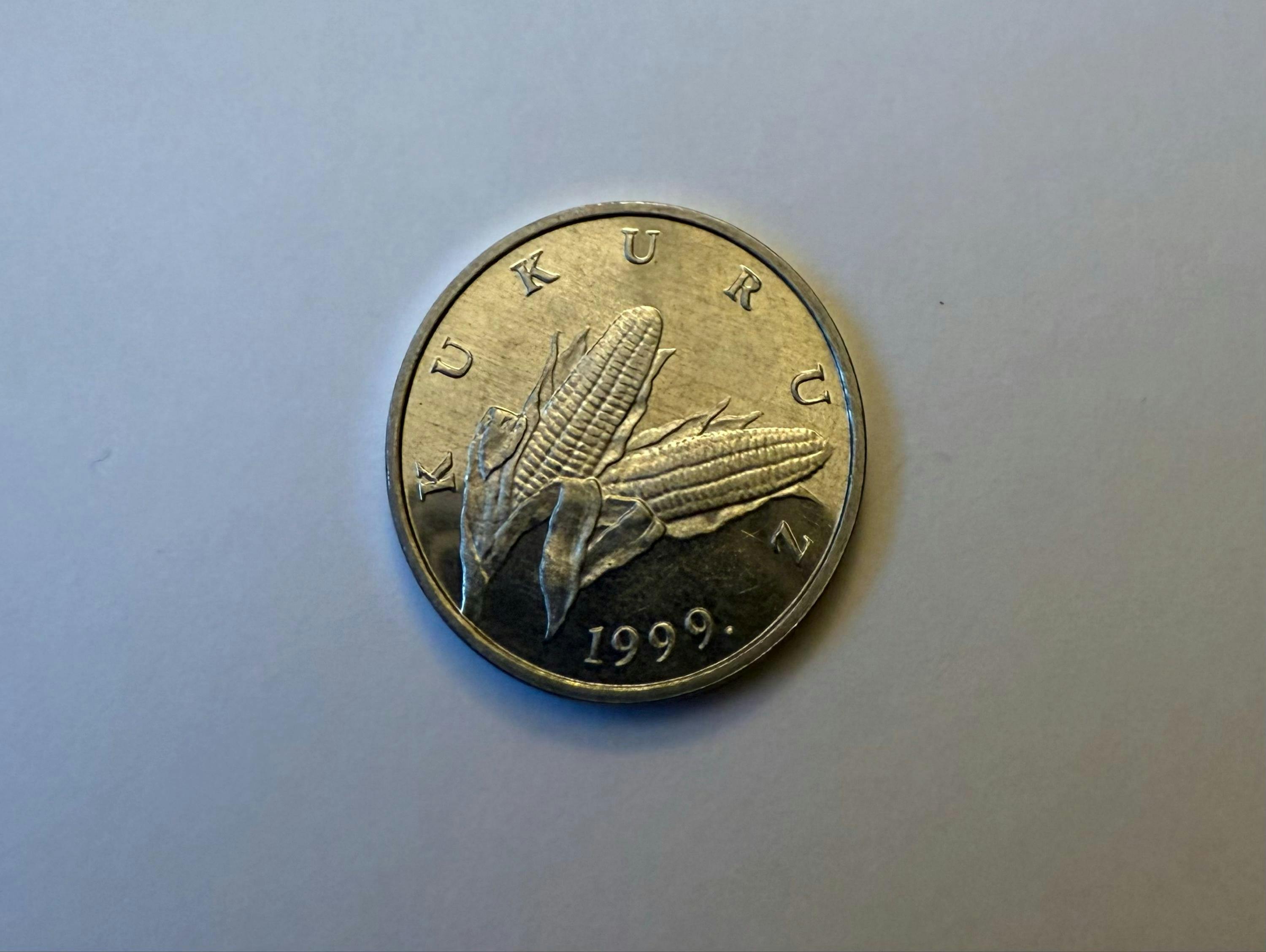 A maize stalk with two ripe ears is depicted on the reverse of the Croatian 1 lipa coin, minted since 1993.
