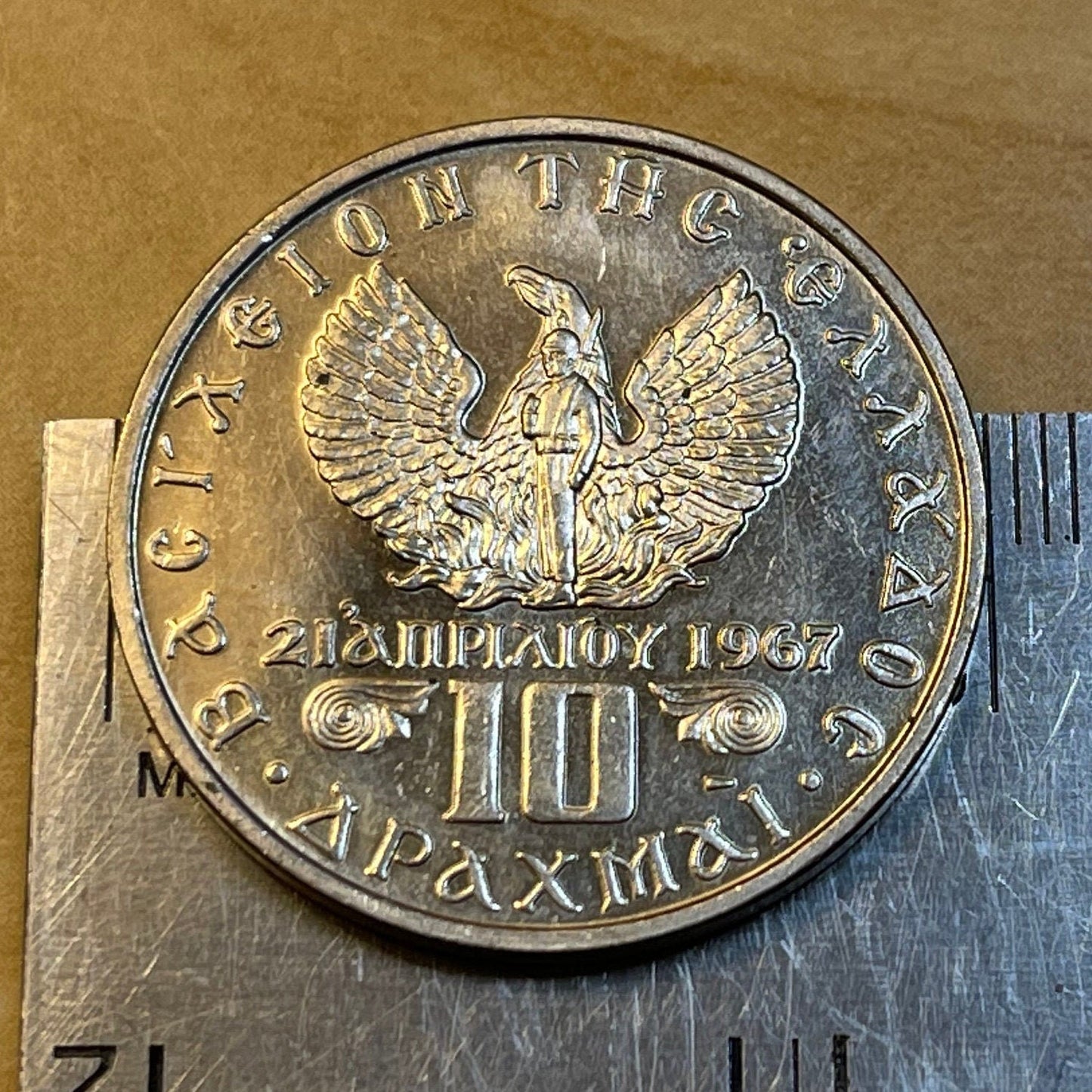 Greek King Constantine Coup d'Etat 10 Drachmai Greece Authentic Coin Money for Jewelry and Craft Making (Soldier & Phoenix)