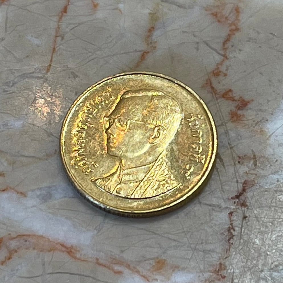 King Bhumibol of Thailand & Wat Phra Mahathat 25 Satang Authentic Coin Money for Jewelry and Craft Making (Buddhist Stupa)