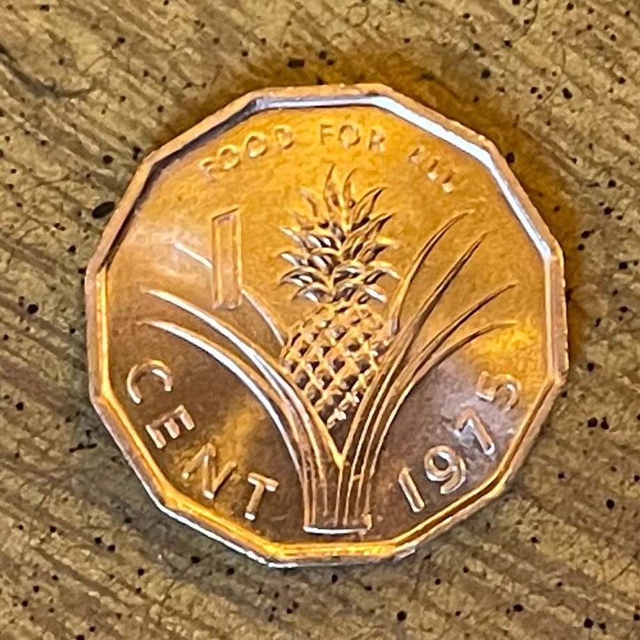 King Sobhuza & Pineapple 1 Cent Swaziland Authentic Coin Money for Jewelry (1975) (1000 Grandchildren) (Polygamy) (Dodecagonal) (Eswatini)