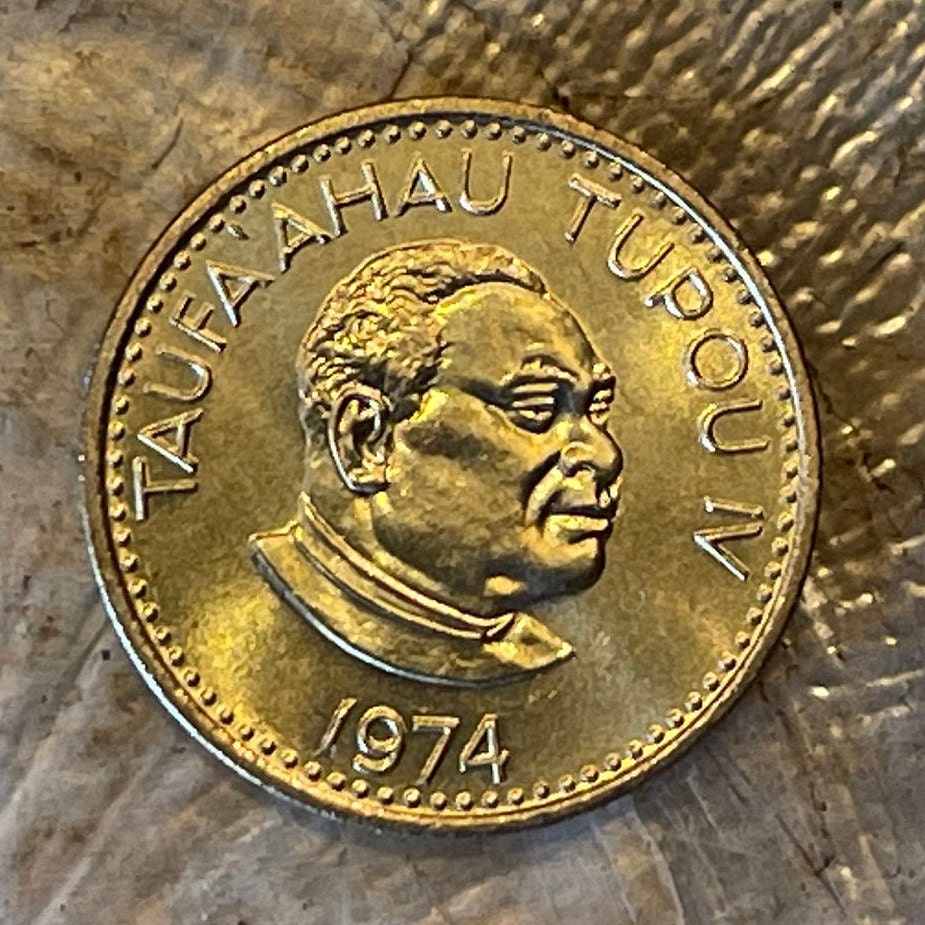 King Taufa'ahau Tupou IV & King Malila the Giant Tortoise 1 Seniti Tonga Authentic Coin Charm for Jewelry and Craft Making