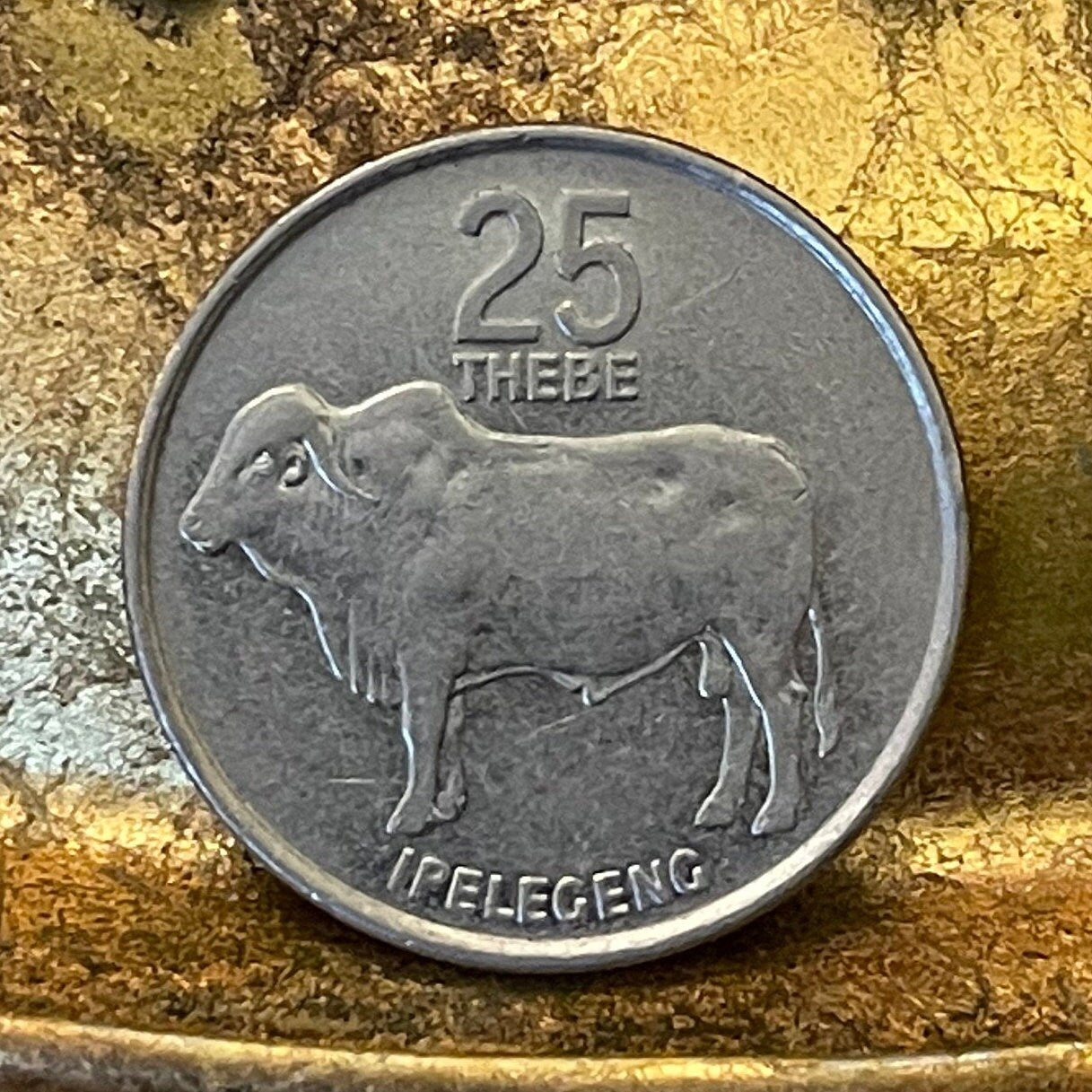 Zebu 25 Thebe Botswana Authentic Coin Money for Jewelry and Craft Making (Rain) (Racial Harmony) (Pula) (Self Sufficiency)